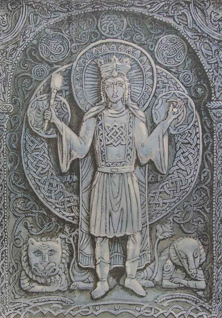 On earth, he is represented as an old man, wrapped in a bearskin cloak and followed by a wolf, another of Dazhbog’s incarnations, yet, just like Helios, he is the personification of the Sun and from dawn till dusk he rides in his chariot drawn by a pair of fire-breathing white horses across the skies, only to go to Nav, the underworld, during the night.